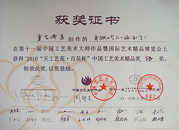 榮獲"天工藝苑?百花杯" 中國工藝美術(shù)精品獎銀獎