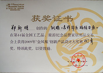 榮獲中國工藝美術(shù)"金鳳凰"創(chuàng)新產(chǎn)品設(shè)計(jì)優(yōu)秀獎(jiǎng)
