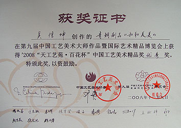 榮獲中國工藝美術(shù)優(yōu)秀獎
