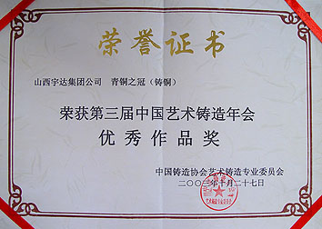 榮獲第三屆中國藝術(shù)鑄造年會優(yōu)秀作品獎