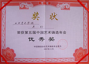 榮獲第五屆中國藝術(shù)鑄造年會(huì)優(yōu)秀獎(jiǎng)
