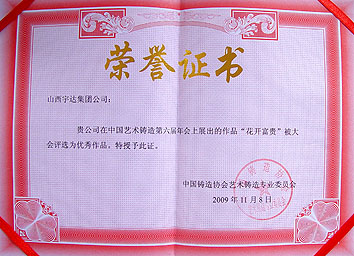 榮獲第六屆中國(guó)藝術(shù)鑄造年會(huì)優(yōu)秀作品獎(jiǎng)