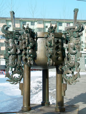 韓美林先生欣然接受了邀請,整整一個月時間,數(shù)易其稿,他參考了夏、商、周時期的青銅鼎的特點,又融進了楚漢風(fēng)格,突破了傳統(tǒng)意義上鼎的模式,體現(xiàn)出新世紀(jì)的現(xiàn)代風(fēng)格,不僅要讓人欣賞到它的偉岸之軀,雋永之美,還要能讓人體驗到它的親近之情,感受到它與傳統(tǒng)文化的一脈相承。設(shè)計稿一脫稿,立即受到央視春節(jié)聯(lián)歡晚會劇組的歡迎,央視領(lǐng)導(dǎo)與有關(guān)專家也交口稱贊。