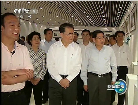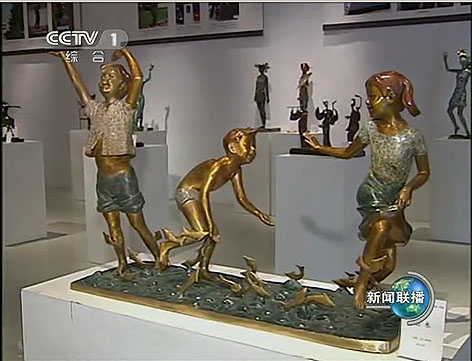(圖為中央電視臺新聞聯(lián)播截圖) 李長春同志一行在宇達青銅文化產(chǎn)業(yè)園內(nèi)的美國著名雕塑家吳信坤雕塑藝術館參觀