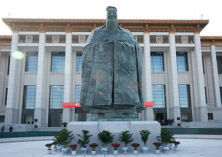 2011年1月11日, 由國(guó)家文化產(chǎn)業(yè)示范基地山西宇達(dá)集團(tuán)承制安裝的高9.5米的孔子銅像在位于天安門(mén)廣場(chǎng)的中國(guó)國(guó)家博物館北門(mén)落成,全國(guó)人大副委員長(zhǎng)蔣樹(shù)聲、全國(guó)政協(xié)副主席孫家正等為銅像隆重剪彩。