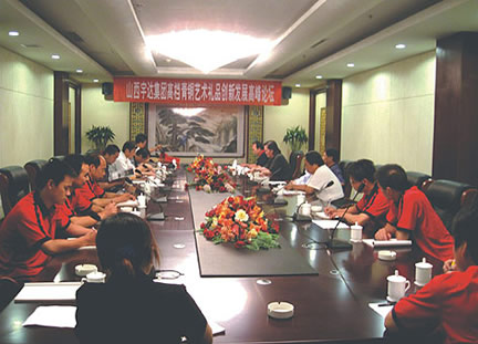 2008年7月25日-27日,旨在立足現(xiàn)代科技,傳承保護傳統(tǒng)工藝技術,將優(yōu)秀的古代傳統(tǒng)工藝技術、成果借助當代技藝應用于山西宇達青銅藝術禮品,提升其技術、藝術、市場附加值的宇達集團高檔青銅藝術禮品創(chuàng)新發(fā)展高峰論壇在山西省運城市金鑫大酒店成功舉辦。來自全國各地的專家學者、工藝美術大師等9人參加了此次高峰論壇。并就宇達集團青銅藝術禮品創(chuàng)新模式和組織模式達成初步議定。