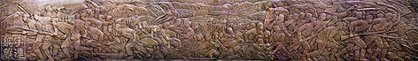 據(jù)《人民日?qǐng)?bào)》、中央電視臺(tái)等媒體報(bào)道:2005年7月29日,中共中央總書(shū)記、國(guó)家主席、中央軍委主席胡錦濤在山西武鄉(xiāng)瞻仰了八路軍太行紀(jì)念館??倳?shū)記登上紀(jì)念館后面的鳳凰山頂,瞻仰了八路軍抗戰(zhàn)紀(jì)念碑,并敬獻(xiàn)花籃??倳?shū)記深情撫摸著紀(jì)念碑后面的反映八路軍英勇作戰(zhàn)的浮雕,感慨地說(shuō):"八路軍和太行兒女為抗日戰(zhàn)爭(zhēng)的勝利作出了巨大犧牲和重要貢獻(xiàn)??谷諔?zhàn)爭(zhēng)中培育的太行精神,凝聚著中國(guó)共產(chǎn)黨人的優(yōu)秀品質(zhì),凝聚著中國(guó)人民的奮斗精神,永遠(yuǎn)是中華民族的寶貴精神財(cái)富"。而這件長(zhǎng)15米,高1.8米的青銅浮雕就是由宇達(dá)集團(tuán)鑄造安裝的。 | |